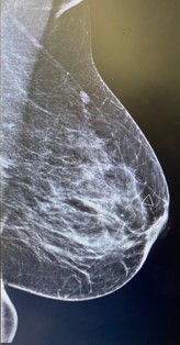 Patient denied any history of trauma, family history of breast cancer, previous breast surgery.