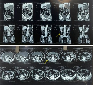 Investigations: Ultrasonography of the abdomen showed a 1.6 cm fascial defect in the posterior abdominal wall with herniation of omental fat, and a 1.3×2.9 cm hypoechoic lesion in the right lumbar region. Contrast-enhanced CT confirmed a 1.4 cm defect in the right superior lumbar triangle with a hernial sac measuring 6.5×2.4×8.3 cm extending from T11 to L2, containing omental fat (Figure 2). Notably, no bowel loops were involved. Additional findings included gallbladder sludge and benign renal cysts. Routine hematological and biochemical investigations were within normal limits. Preoperative cardiac evaluation revealed mild cardiomegaly with a small pericardial effusion but preserved function.